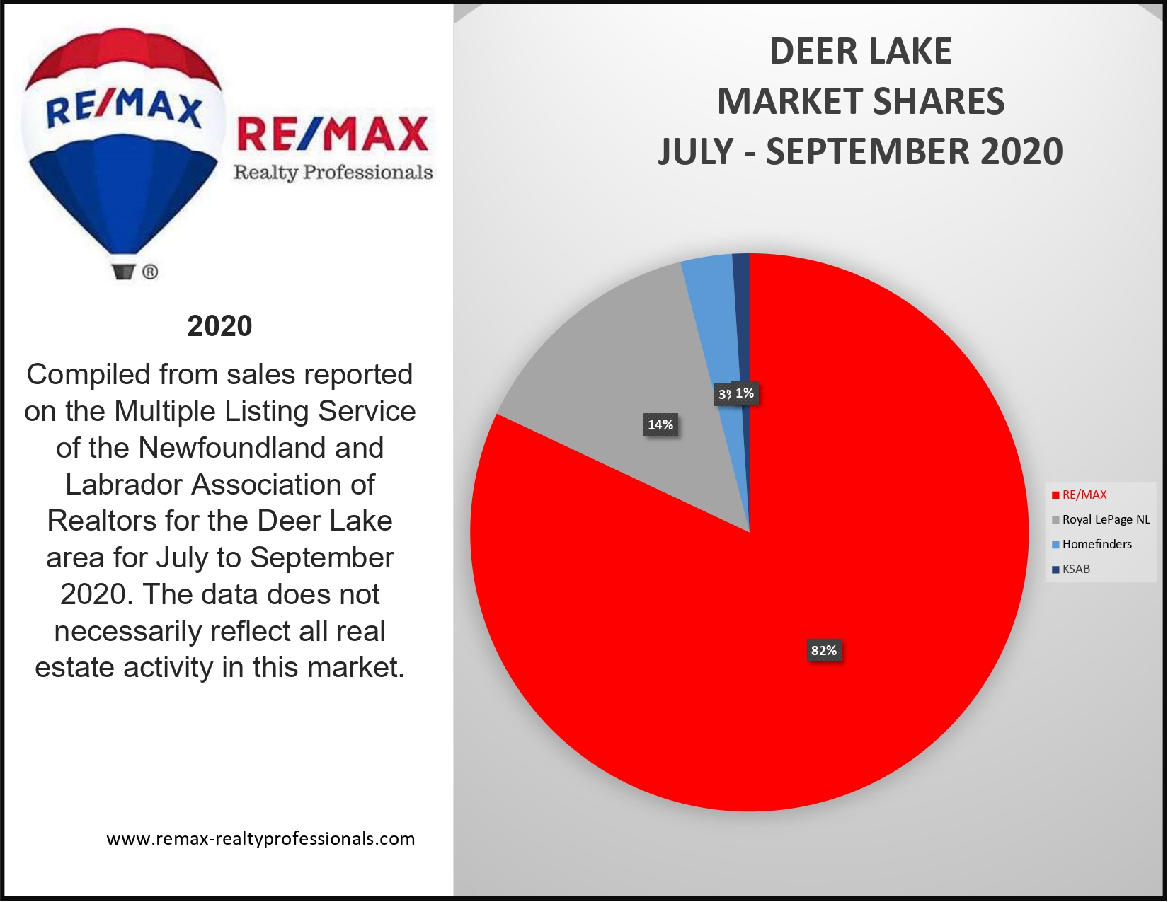 Compiled from sales reported on the Multiple Listing Service of the Newfoundland and Labrador Association of Realtors for the Deer Lake area for July - Sept 2020. The data does not necessarily reflect all real estate activity in this market.